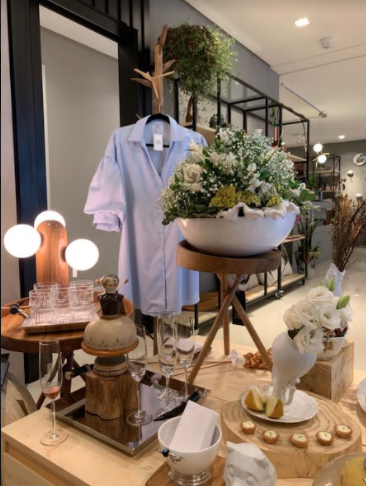 Mesa de doces decorada com arranjos redondos baixos compostos com astromélias brancas, mosquitinhos e ruscus.